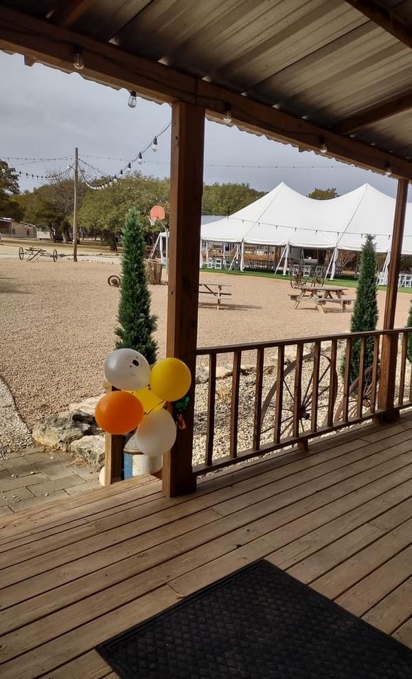 During the reception, we had our food buffet set up in the Bluebonnet Room which is also where we held cocktail hour for our guests while me and my husband and our families took pictures! This room had a built in bar, a commercial kitchen and a beautiful covered porch! Next to the Bluebonnet Room is where our reception was set up which was called the Event Tent! This isn't your normal tent. It was lit up with beautiful lights and chandeliers that seated up to 300 people! Next to the tent was the Courtyard that had beautiful lighting along with a fire pit, horseshoe, cornhole, basketball, volleyball, gaga ball and lots of picnic tables and benches to hangout and have fun! The amount of compliments we received on how beautiful our reception was was astronomically high! After dinner and our speeches we then moved our party into the Texas Room! This was where we had our cake cutting and dancing! This room was just so beautiful and everything we could've asked for the sound system made is easy for our Dj to set up and everything! The professional dance lighting system and fog machine made the night even more fun and just overall amazing! After all of the fun we didn't have to leave the venue or pack up and head to a hotel and neither did our family who drove into state for the wedding! Me and my husband had the privilege to stay the night in the beautiful honeymoon Cabin! This room was just amazing and so beautiful! Our favorite part about the room was the restroom! The shower was huge and just beautiful! We had our own coffee bar, fridge and microwave! Our family also had the choice to stay in the lovely on site cabins so they didn't have to leave! These cabins were absolutely beautiful and perfect for guests who lived out of state!